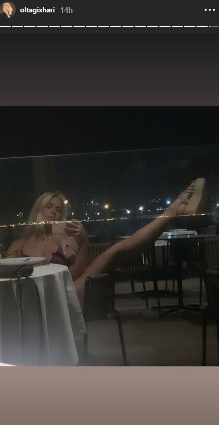 Olta e ka publikuar një foto në Instastory, imazh në të cilin e ka çuar edhe këmbën lartë, kështu duke i provokuar akoma më shumë ndjekësit.