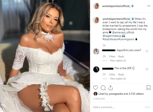 Me një tjetër postim Anxhela ka zbuluar se pamja e saj si nuse është për videoklipin e ri i cili do mbajë titullin “Shpirt i bukur”.