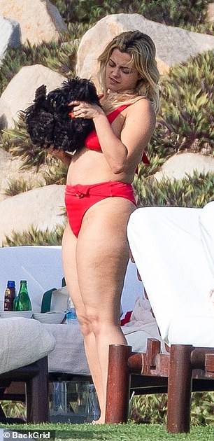 Ata janë shfaqur shumë të afërt me njëri-tjetrin, ndërkohë që Bebe qëndronte e shtrirë pranë partnerit të saj. këngëtarja kishte zgjedhur të vishte një palë bikini në ngjyrë të kuqe dhe nuk ka harruar të marrë me vete edhe qenushin e saj.