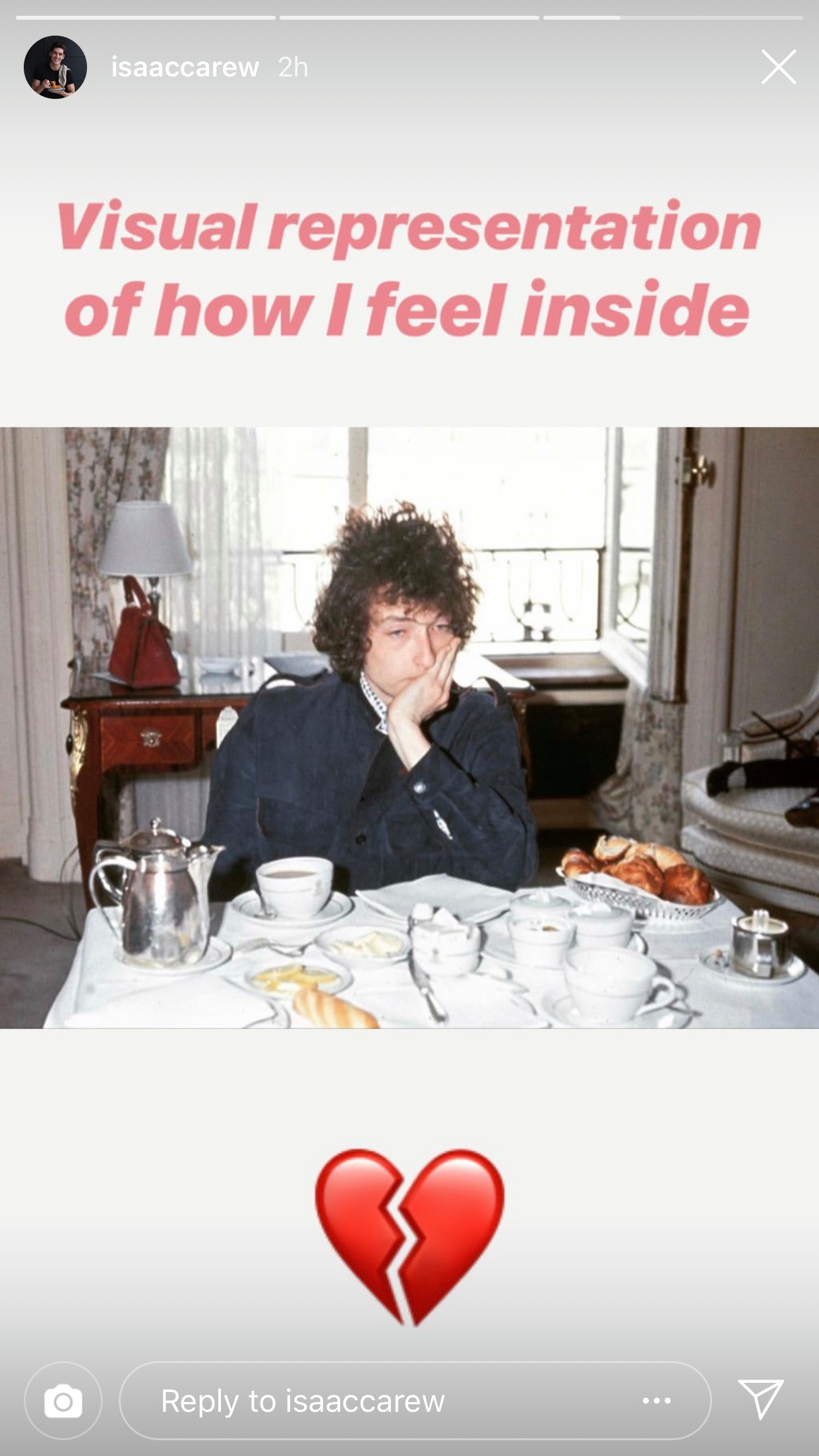 Nga ana tjetër, këtë mëngjes, Isaku ka postuar një ’emoji’ të thyer të zemrës në një story të tij në Instagram dhe ka lënë të kuptohet se është i lënduar.