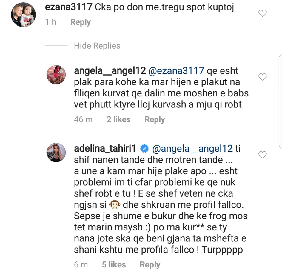 Më poshtë komunikimi mes Adelinës dhe ndjekësit që e ofendon.