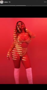 Pranë fotos nuk ka shkruar asgjë por ka provokuar si zakonisht me gjoskin. Duhet kujtuar se me këtë veshje ajo e ka kopjuar modelen Chloe Saxon.