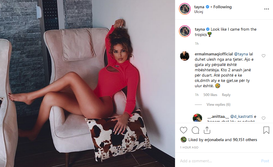 Ermali, i cili sot la një koment sarkastik në foton të Tayna-s mbi një kolltuk, të postuar të enjten pasdite.