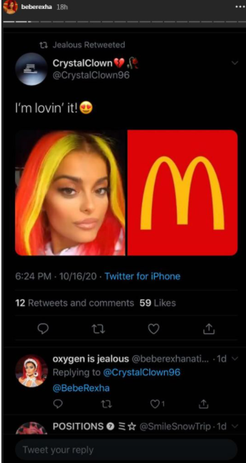 Pamjen e re të këngëtares e kanë krahasuar me logon e rrjetit të famshëm të ushqimeve “MC Donald’s”, ndërsa Bebe e shpërndau edhe vetë këtë meme.