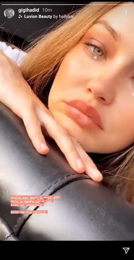 “Do të thosha u riktheva në punë, por të qenurit nënë është një punë si asnjë tjetër. U riktheva në zyrë”, ka shkruar Gigi përkrah një fotografie të saj.