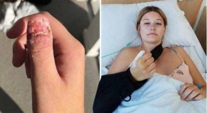 Një vajze iu desh ta amputonte gishtin, pasi zhvilloi një formë të rrallë të kancerit të lëkurës, që iu shkaktua nga ngrënia e thonjve.