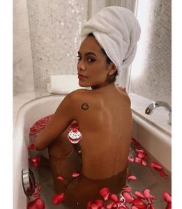 Ajo kishte mbushur vaskën me petale trëndafilash, ndërsa mbante një peshqir në kokë, e gjoksin e mbuloi me një ’emoji.