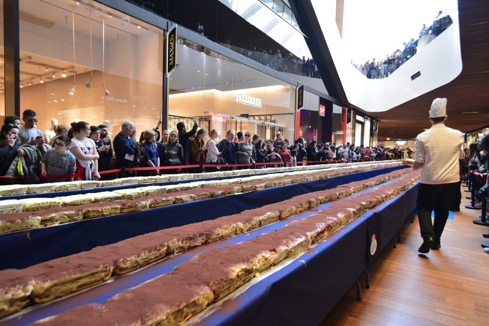 Në hapësirën e City Life shopping districkt, pasticierët e Shkollës së Kuzhinës Teatro7Lab-me sponsor Galbani Santa Lucia, kanë realizuar ëmbëlsirën mbi 80 tavolina, me përbërësit: 500 kg maskarpone, 65 kg kakao e hidhur, 60 kg të verdha veze dhe 70 të bardha, 300 litra kafe dhe 65 kg sheqer.