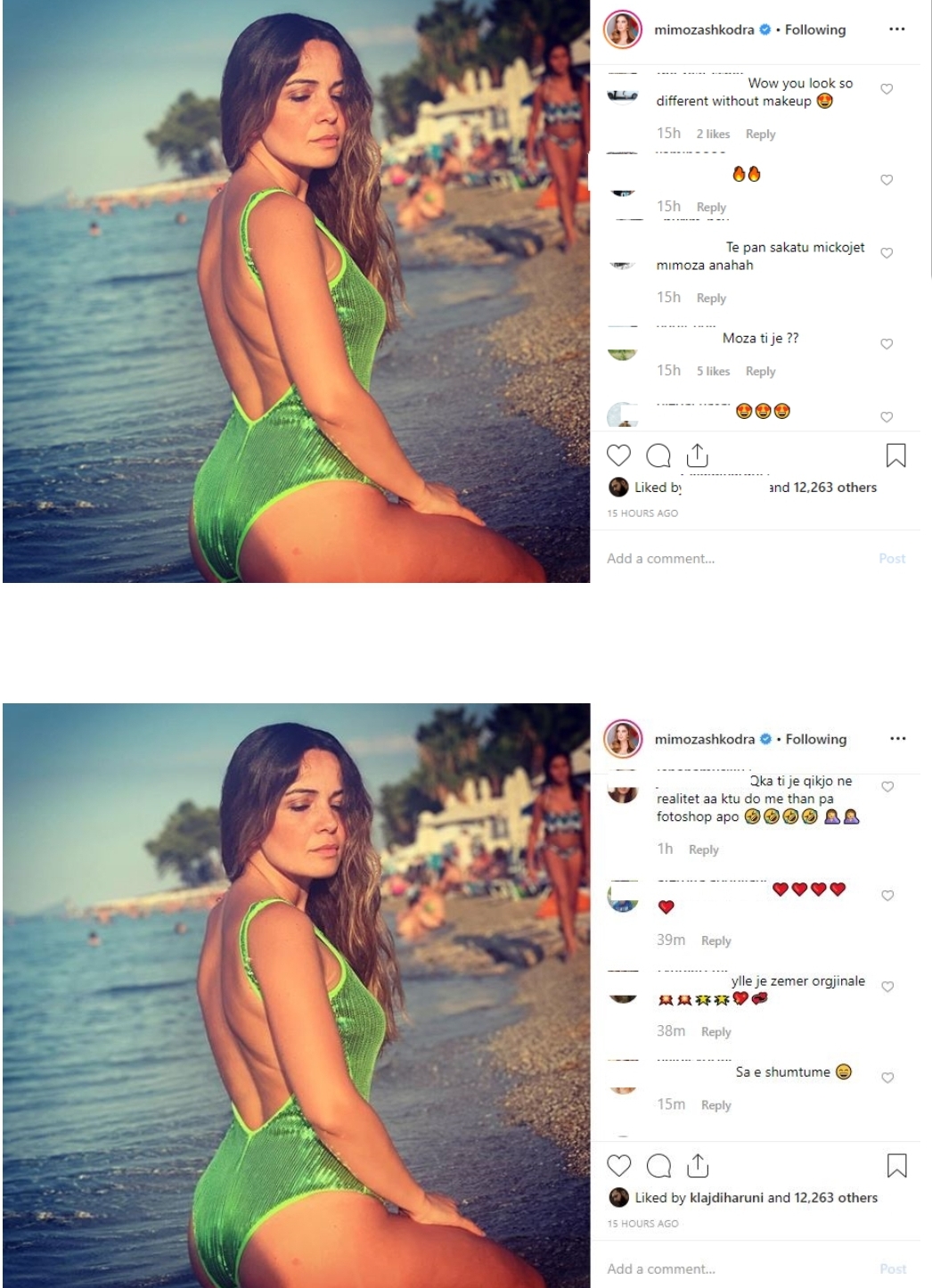 Së fundmi Mimoza ka nisur pushimet dhe nuk ka hezituar që të publikojë foto me bikini ku shfaqet shumë në formë. Megjithatë, përpos komplimentave të shumta të cilët e përgëzojnë për natyralitetin, ka edhe nga ato komentues të cilët u habitën me pamjen e saj pa make up.
