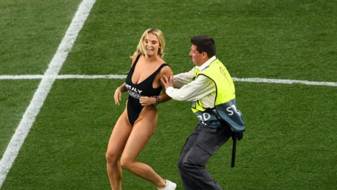Por, për pak kohë u ndal ndeshja në pjesën e parë, shkak u bë një femër e cila hyri gjysmë e zhveshur në fushë.