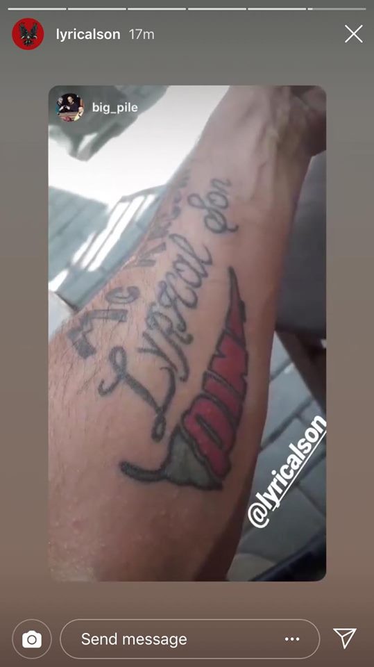 Së fundi, Lyrical Son ka publikuar një fotografi në rrjete sociale, në të cilën tregon se si një fans ka bërë tatuazh në dorë emrin e tij dhe Kreshës.