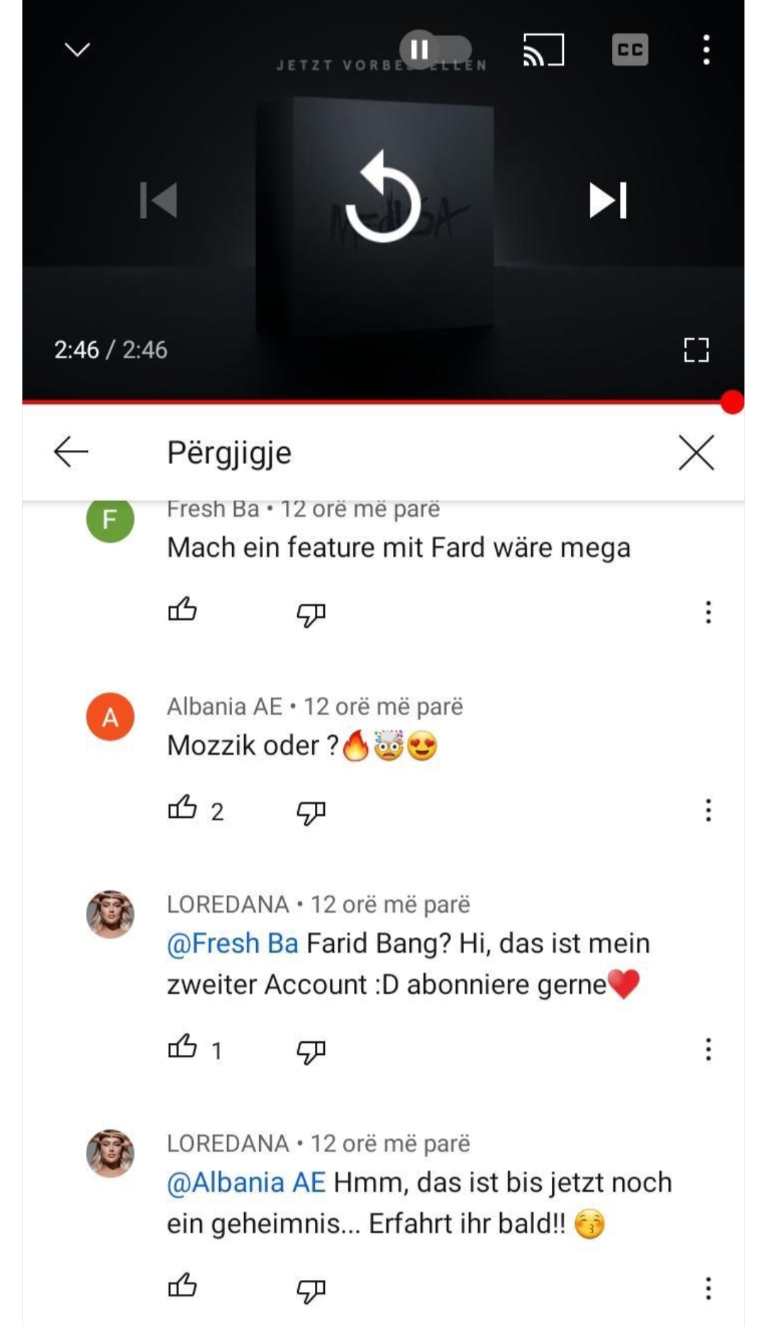 Prej disa ditësh në media po raportohet se Mozzik dhe Loredana do sjellin një këngë së bashku dhe jemi të bindur se do jetë hiti i vitit. Këto zëra i konfirmoi edhe vetë reperja e cila, e pyetur lidhur me bashkëpunimin e përfolur me Mozzik në kanalin e saj në You Tube, u përgjigj: