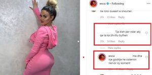 Enca Haxhia me fotografinë e postuar mori një numër të madh komentesh në Instagram, por komenti që i bëri një ndjekës këngëtares tërhoqi më shumë vëmendjen, shkruan lajmi.net.Artistja kishte marrë një pozë ku vinte në pah të pasmet e saj, e kjo fotografi nxiti që një ndjekës të komentojë në këtë mënyrë “tja dish për nder atij që ta ka zhvillu b****”.