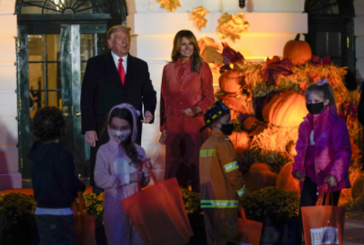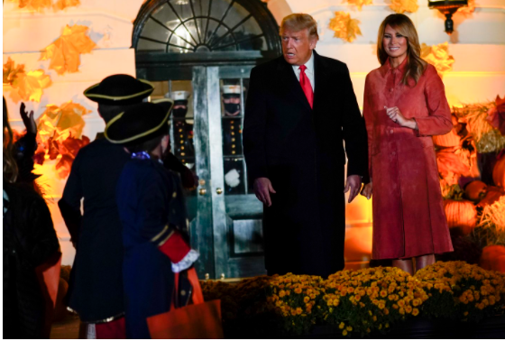 Shtëpia e Bardhë është mbushur me kunguj e gjethe portokalli të vjeshtës, ndërsa persona të shumtë me maska të frkshme kanë shkuar për të vizituar çiftin presidencial.