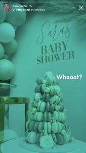 Sara ka postuar një seri videosh dhe fotosh nga ambjenti i arreduar me të njejtat ngjyra si baby shower-in e parë e duket se po i shijon këto momente.