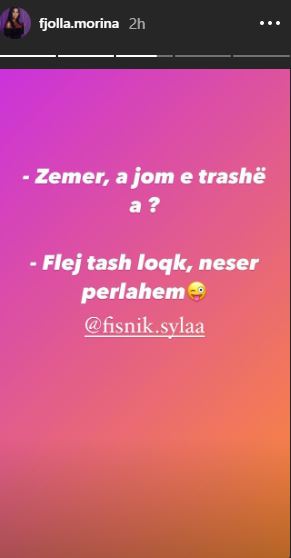 “Flej tash loqk, nesër përlahem”- është biseda e tyre me nota humori, të cilën Fjolla e ndau në InstaStory.