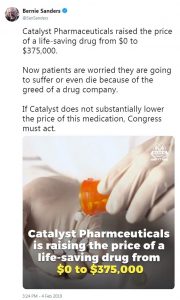 “Vendimi i kompanisë së farmaceutikëve për të vendosur çmimin 375 mijë dollarë nuk është vetëm një përdorim ndaj takspaguesve amerikanë por dhe shfrytëzim i pamoralshëm i pacientëve që kanë nevojë për këtë medikament”, shkruajti Sanders në letrën e tij, të dërguar më 4 shkurt.