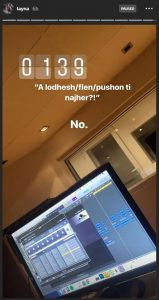 Reperja nga Prizreni ka postuar një fotografi nga studio e saj në Instastory, ku shihet se edhe në orët e vona 22 vjeçarja nuk i ndalet punës, dhe jo rastësisht po cilësohet si një ndër artistet më të mira.