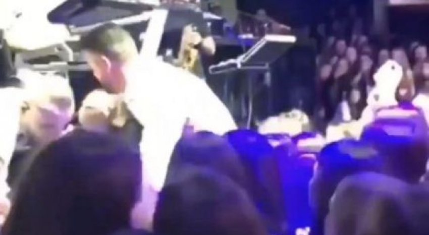 Por një video e publikuar në rrjetet social ka treguar edhe momentin kur këngëtari Meda reagon shpejtë për të shpëtuar një nga të pranishmet që po alivanosej.